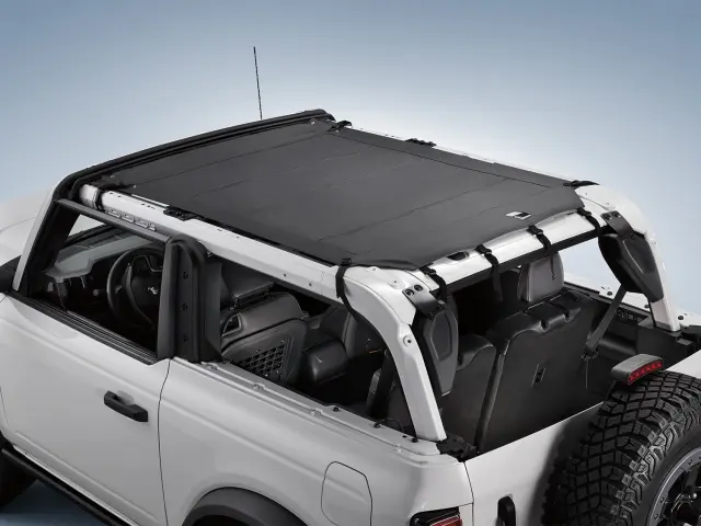 2 door, accessory, type 3, twill. Canvas fabric allows you to open up your Bronco without the effects of harsh overhead sunlight.